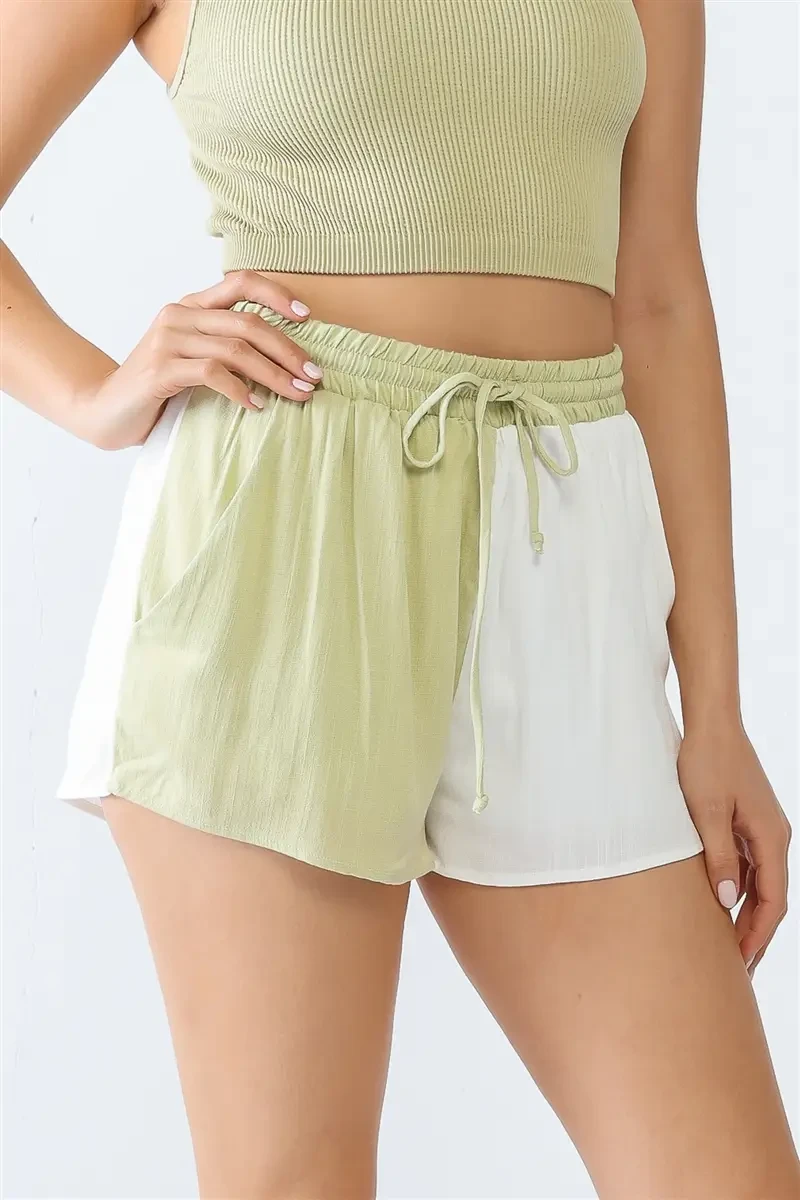 The time to unwind is now with the Beach Block Shorts! Lightweight, woven fabric shapes these breezy shorts with a high-rise, elasticized waistband, and twin diagonal front pockets.