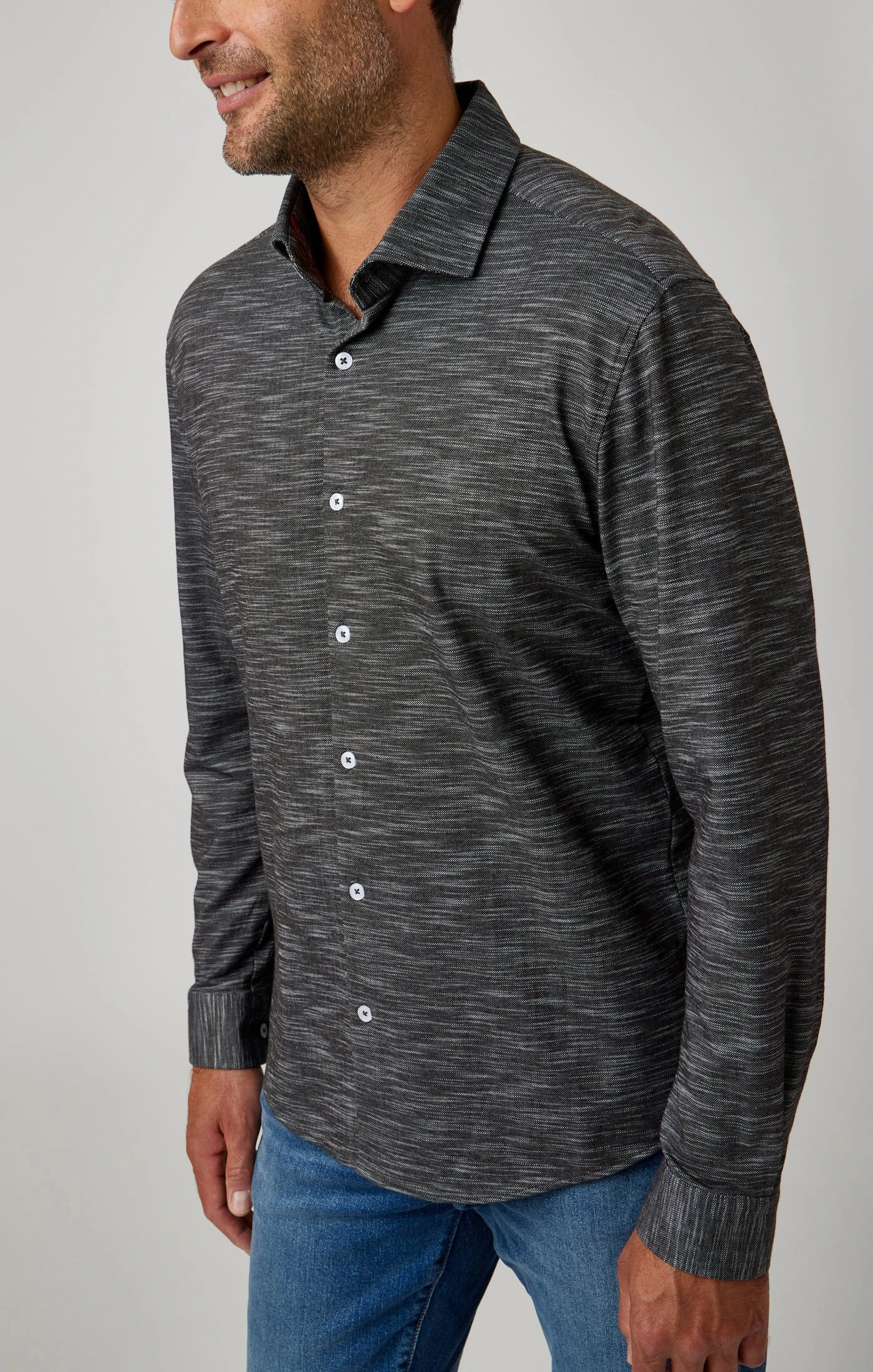 Discover our Black Slub Knit Performance Long Sleeve Shirt: