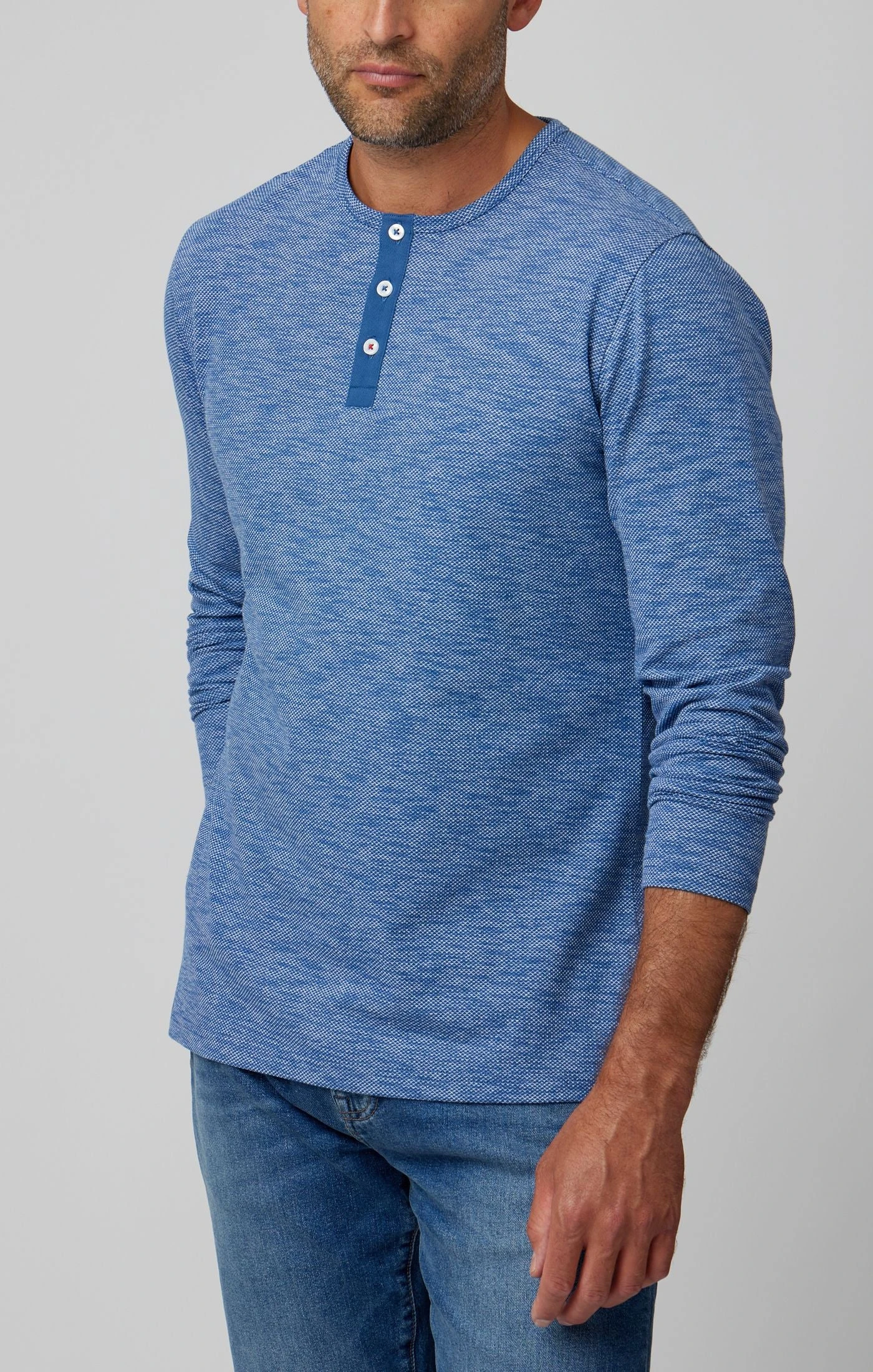 Embrace Timeless Elegance with the Denim Blue Performance Long Sleeve Henley