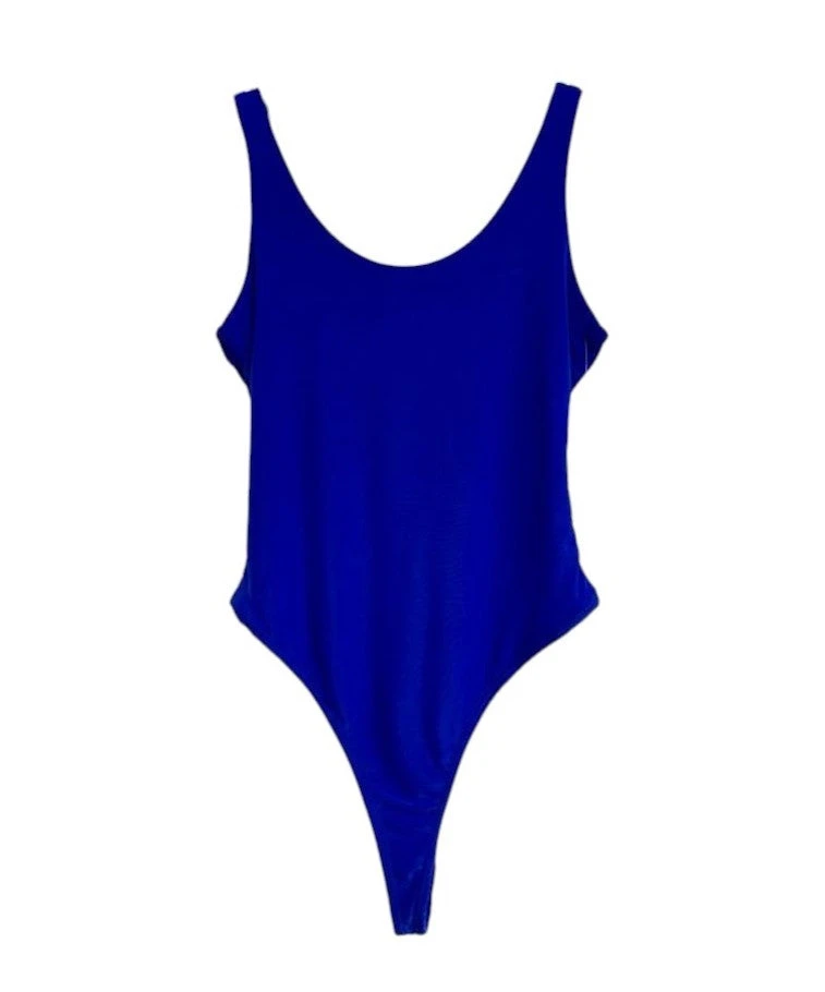 Say hello to your new favorite bodysuit! Sleek, stretch-knit fabric shapes this essential bodysuit with a scoop neckline, wide shoulder straps and thong back. Pair with just about any outfit for a figure-flattering fit!