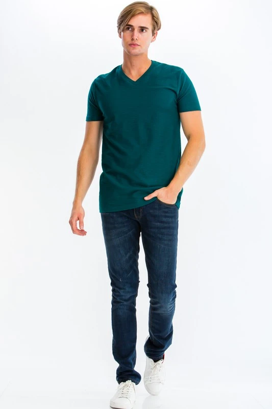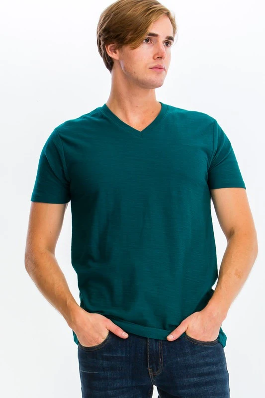 A wardrobe staple tee made from premium cotton with ribbed texturing throughout and a classic V-neck that’s great layered or on its own.