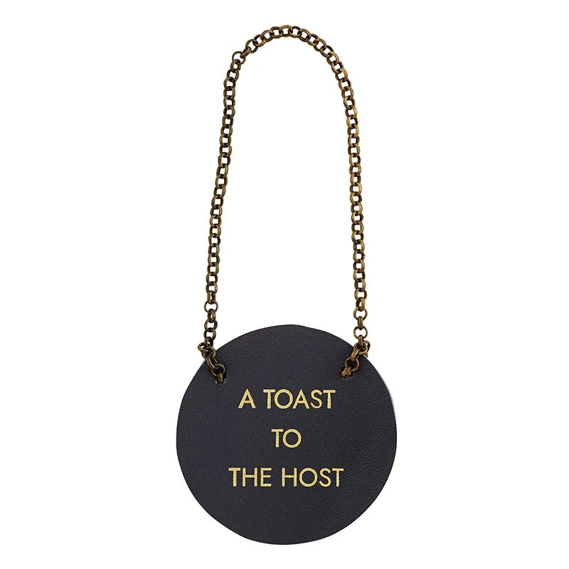 Dress up any bottle of wine with a Leather Bottle Tag! Genuine leather with metal chain Perfect last minute gift idea or hostess gift.