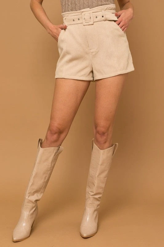 Create a look that’s as cool as can be in the Trendy Inspo Cream Corduroy Shorts! Soft lightweight corduroy creates a high-waisted fit, complete with belt loops, a matching detachable belt, and a hidden zip fly with clasp closure. Diagonal front pockets accent the tailored silhouette. Pair with a sweater and boots for an “Inspo-style”.